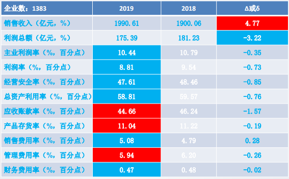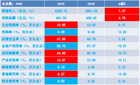 實(shí)現(xiàn)主營(yíng)業(yè)務(wù)收入5359.72億元,同比增長(zhǎng)7.37%、 比上年下降1.70個(gè)百分點(diǎn)。 凈增368.09億元,比上年的492.38億元減少25.24%。企業(yè)主營(yíng)業(yè)務(wù)收入平均規(guī)模12167萬(wàn)元,同比增加836萬(wàn)元。