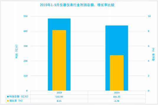 近日,上海行業(yè)協(xié)會(huì)發(fā)布了2019年1-9月儀器儀表行業(yè)經(jīng)濟(jì)運(yùn)行概況。1-9月儀器儀表行業(yè)實(shí)現(xiàn)利潤(rùn)總額481.35億元,同比增長(zhǎng)4.78%;利潤(rùn)凈增21.95億元,比上年的40.24億元減少45.46%。