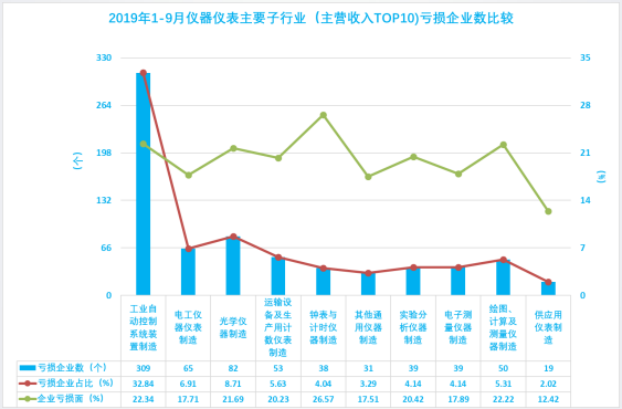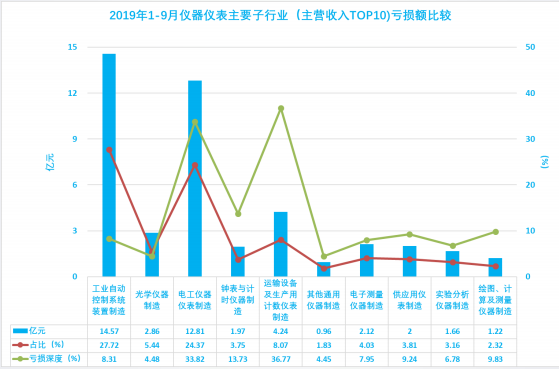 1.19 2019年1-9月儀器儀表主要子行業(yè)(主營(yíng)收入TOP10)虧損額比較