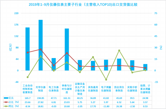 1.20 2019年1-9月儀器儀表主要子行業(yè)(主營(yíng)收入TOP10)出口交貨值比較