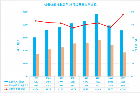 2.8 儀器儀表行業(yè)歷年1-9月經(jīng)營(yíng)安全率比較