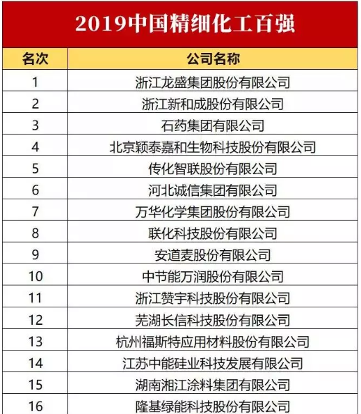 必看 | 2019中國精細化工百強榜發(fā)布了!